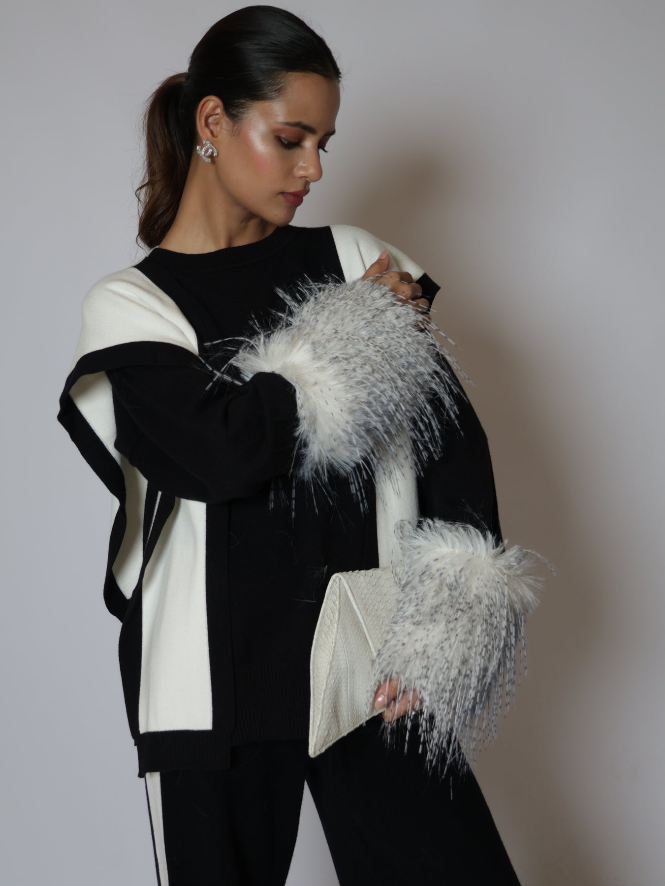 FEATHER CUFF BW KNIT SET - 3 PIECE